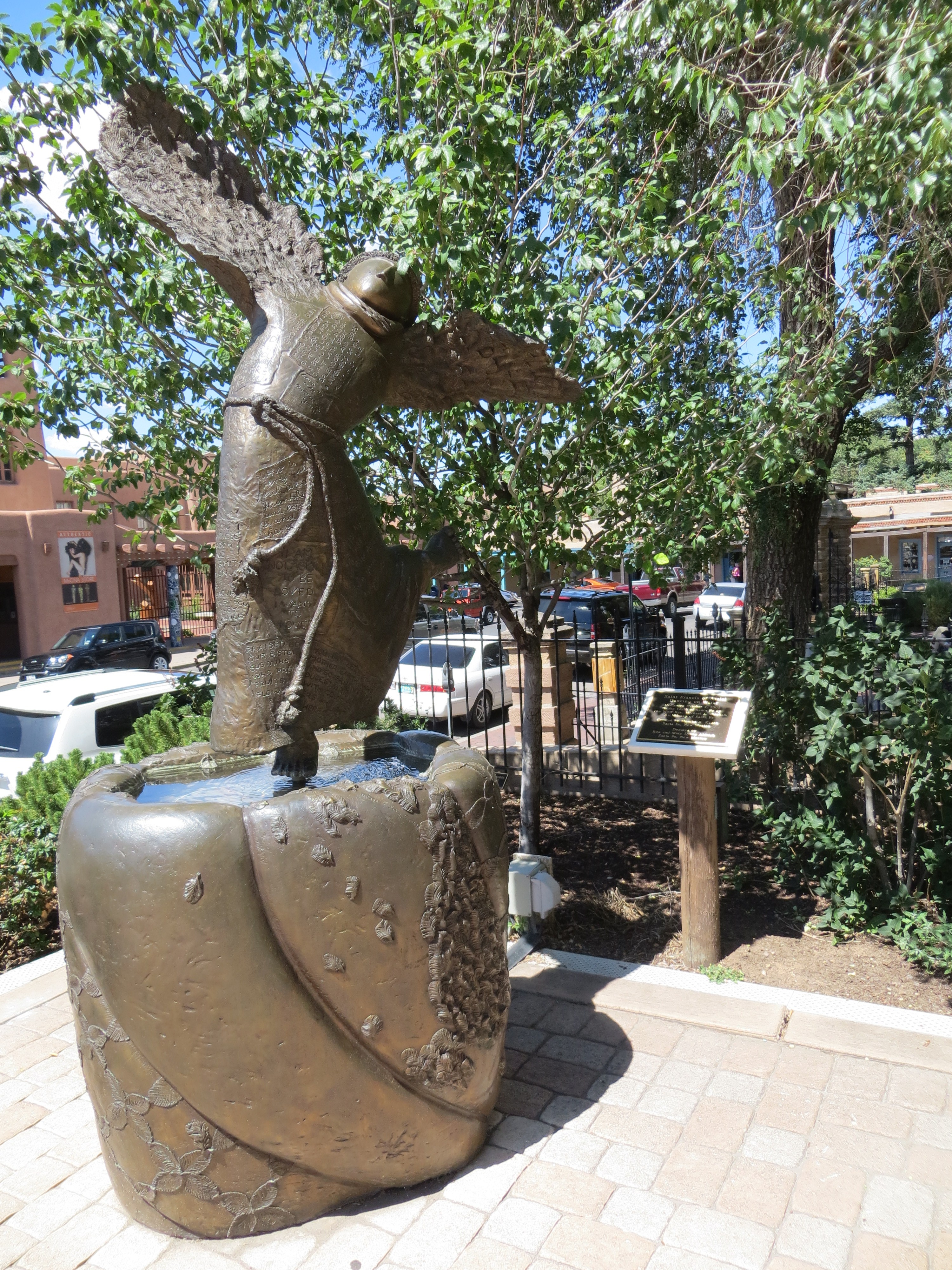 St Francis of Assisi joyously dancing on water, one of the many statues of the Saint in Santa Fe, New Mexico, USA. Until visiting Santa Fe, I hadn’t been aware that the city is named after Saint Francis – it’s full name is ‘the Royal Town of the Holy Faith of Saint Francis of Assisi.’