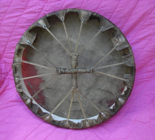 The lacing of this Native American drum is based on the 4 directions and associated elements of the Medicine Wheel. It is designed to make the drum a sacred tool. Source: sacredhoopdrums.wordpress.com.