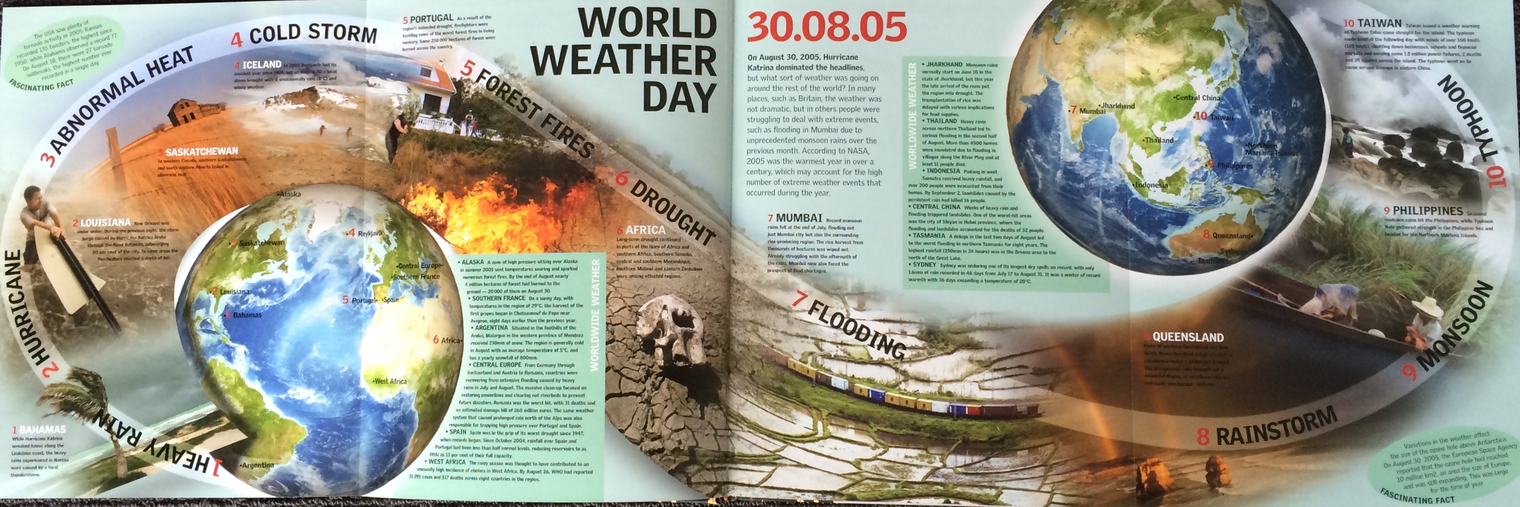 ‘Extreme Weather’ (2006), published by Reader’s Digest. This book features a fold-out section on World Weather Day, comparing the weather conditions in 10 places around the world, including New Orleans. Since it’s publication, extreme weather events have increased.