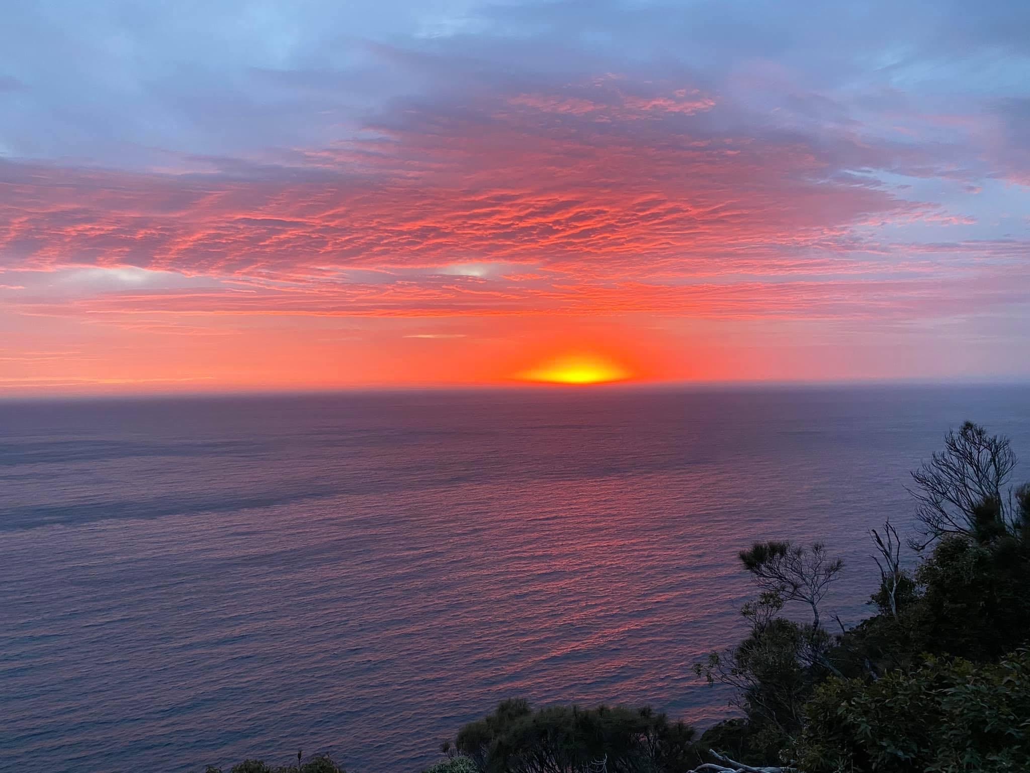 Awakening to a glorious sunrise over Munro Bight was one of many unforgettable experiences on a recent four day trek in SE Tasmania, Australia. There is something universally uplifting about the rising sun, especially when vibrant colours fill the sky. Like rainbows, they touch the soul and make you feel grateful to be alive. Spending several days experiencing the awe and wonder of the Three Capes region was a privilege, especially in Spring. By good fortune I had read the book ‘Shinto Moments‘ just before departing. The perspectives it contained were both complementary and contrasting to ‘Encounters on the Edge‘, the guide provided for the Three Capes Track.
